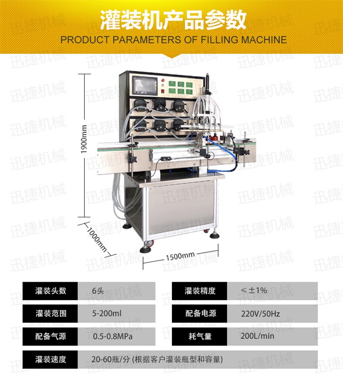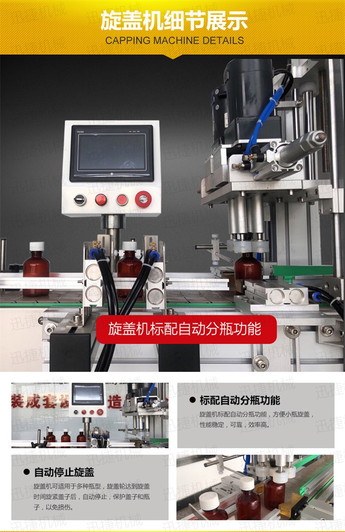 特 點(diǎn):定量灌裝,和瓶蓋旋蓋,在一臺(tái)機(jī)器上完成。具有占地空間小,自動(dòng)化程度高特點(diǎn)