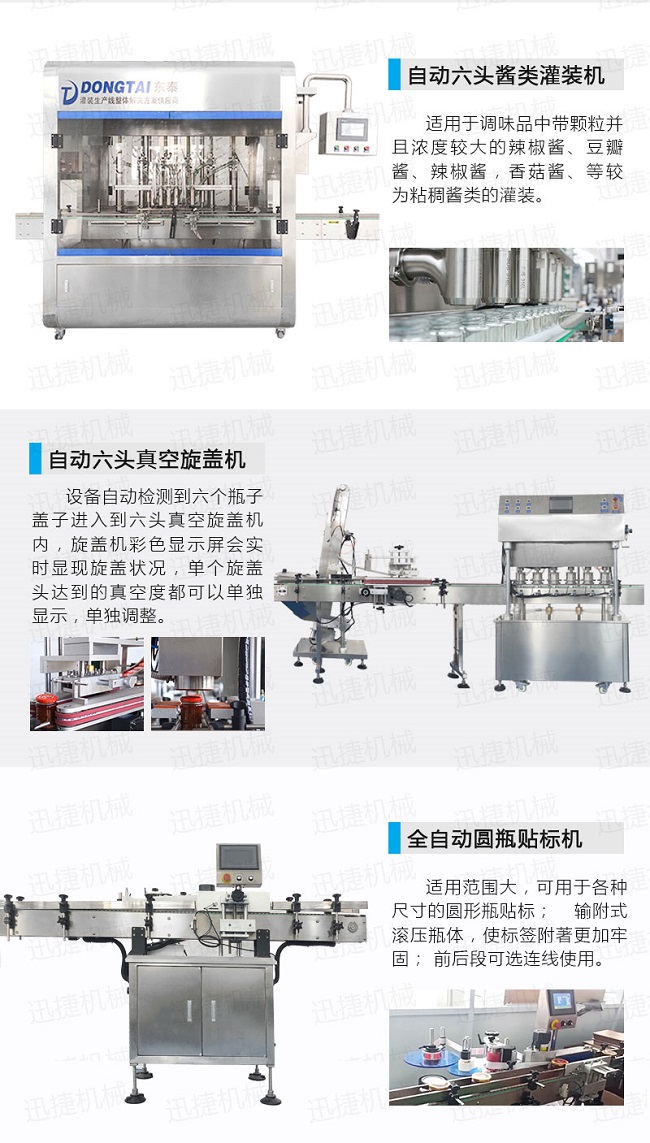 自動化醬料灌裝旋蓋貼標(biāo)生產(chǎn)線優(yōu)勢: