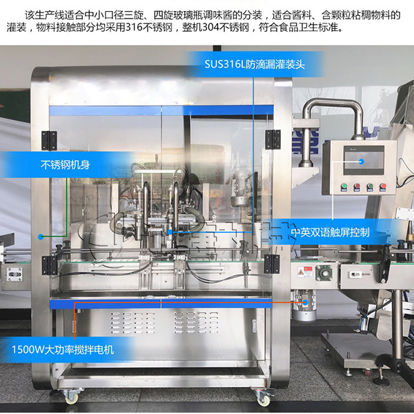 1、該機(jī)為全自動(dòng)醬類(lèi)灌裝機(jī),配有自動(dòng)攪拌功能,使物料混合更加均勻 ,有效的解決灌裝誤差大的問(wèn)題;