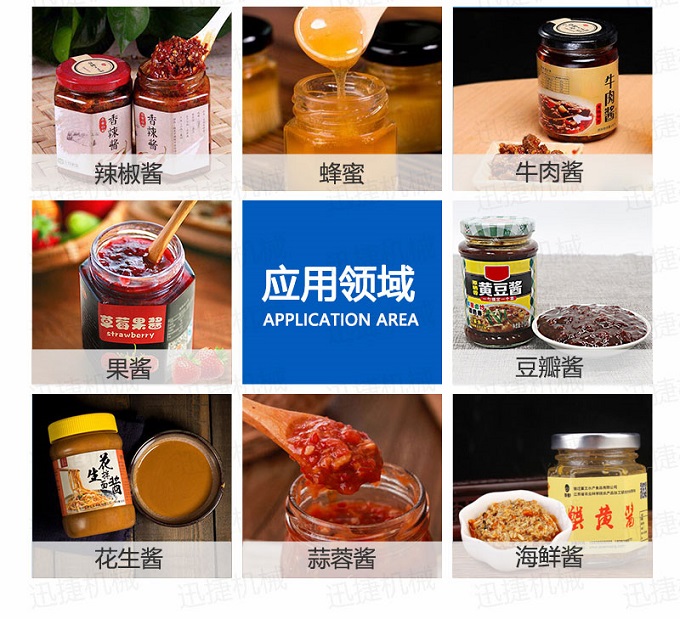 辣椒醬灌裝機采用活塞式灌裝原理,適用于調(diào)味品中帶顆粒并且濃度較大的辣椒醬、豆瓣醬、花生醬、香菇醬、果醬、牛油火鍋底料、紅油火鍋底料、蝦醬等較為粘稠醬類的灌裝。